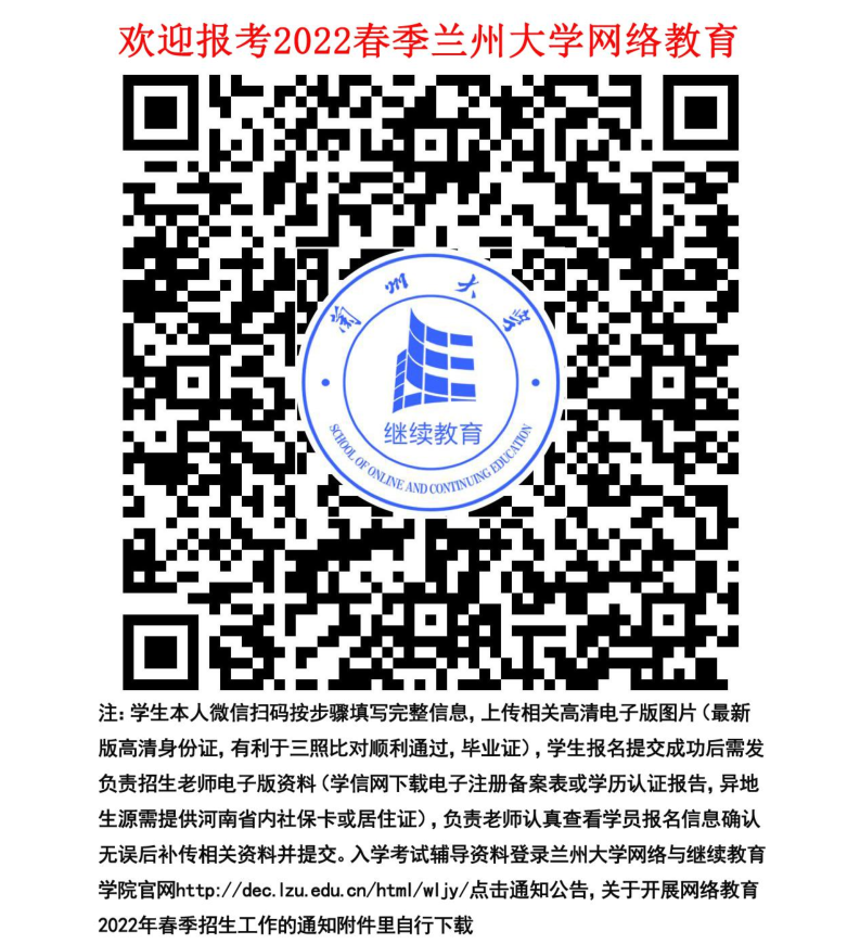 兰州大学网络教育(谈球吧登录入口学习中心)2022 年春季招生简章